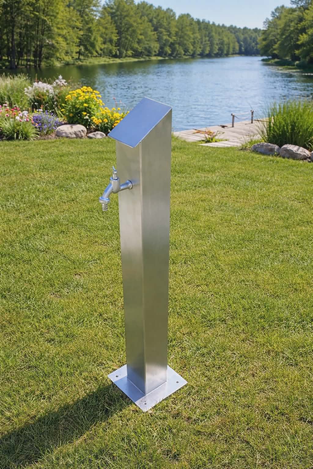 Volne stojací stĺpik na vodu je vyrobený s kartáčovanej nerezovej ocele.
