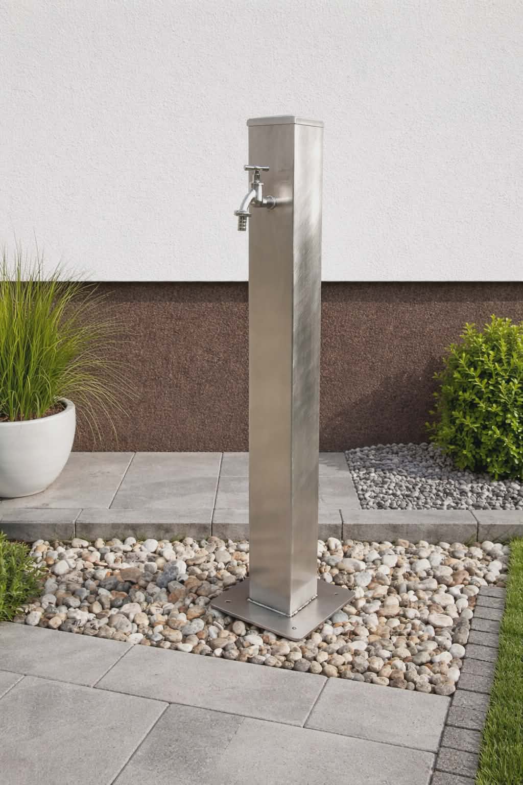 Voľne stojací stĺpik na vodu je vyrobený s kartáčovanej nerezovej ocele.