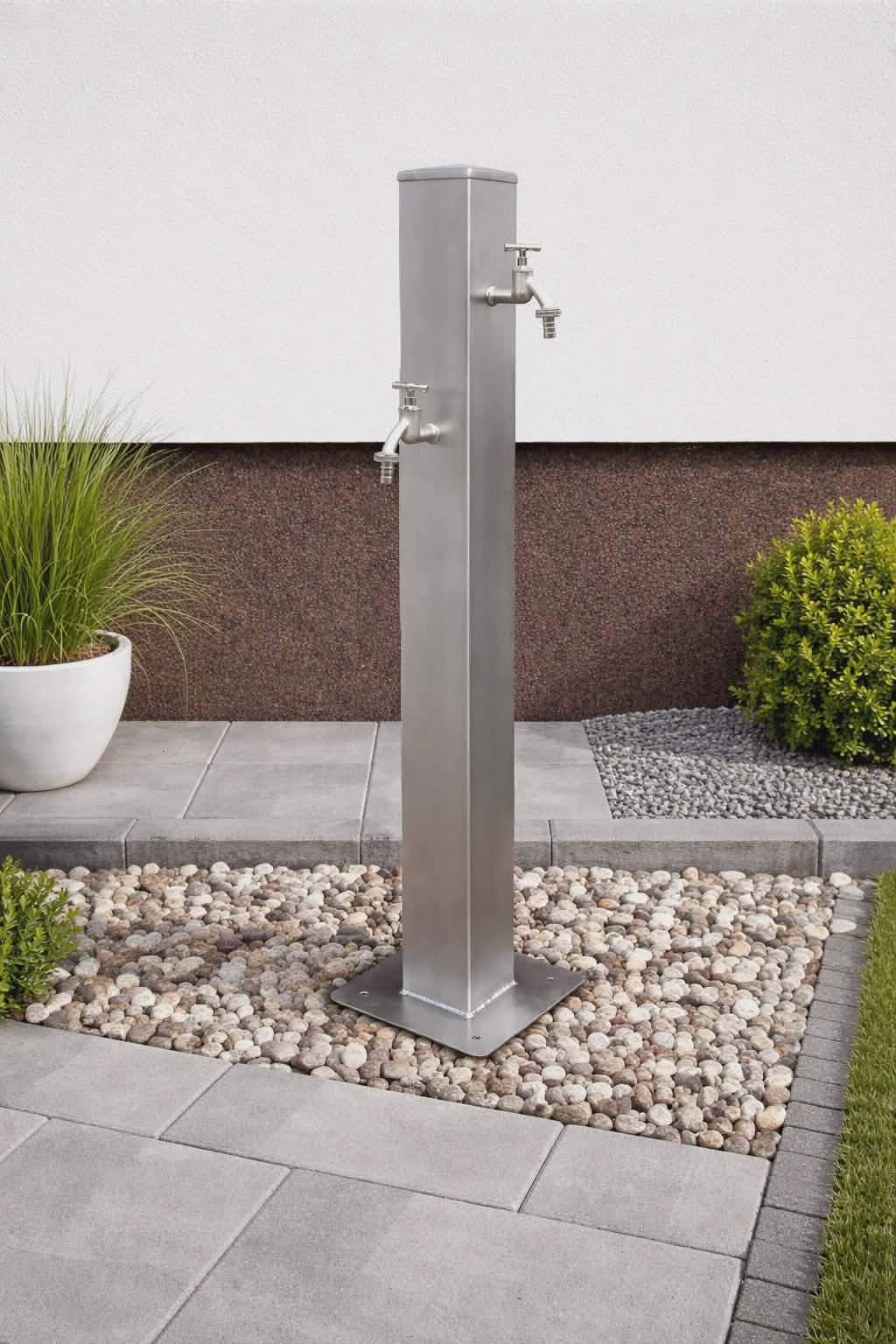 Voľne stojací stĺpik na vodu je vyrobený s kartáčovanej nerezovej ocele.