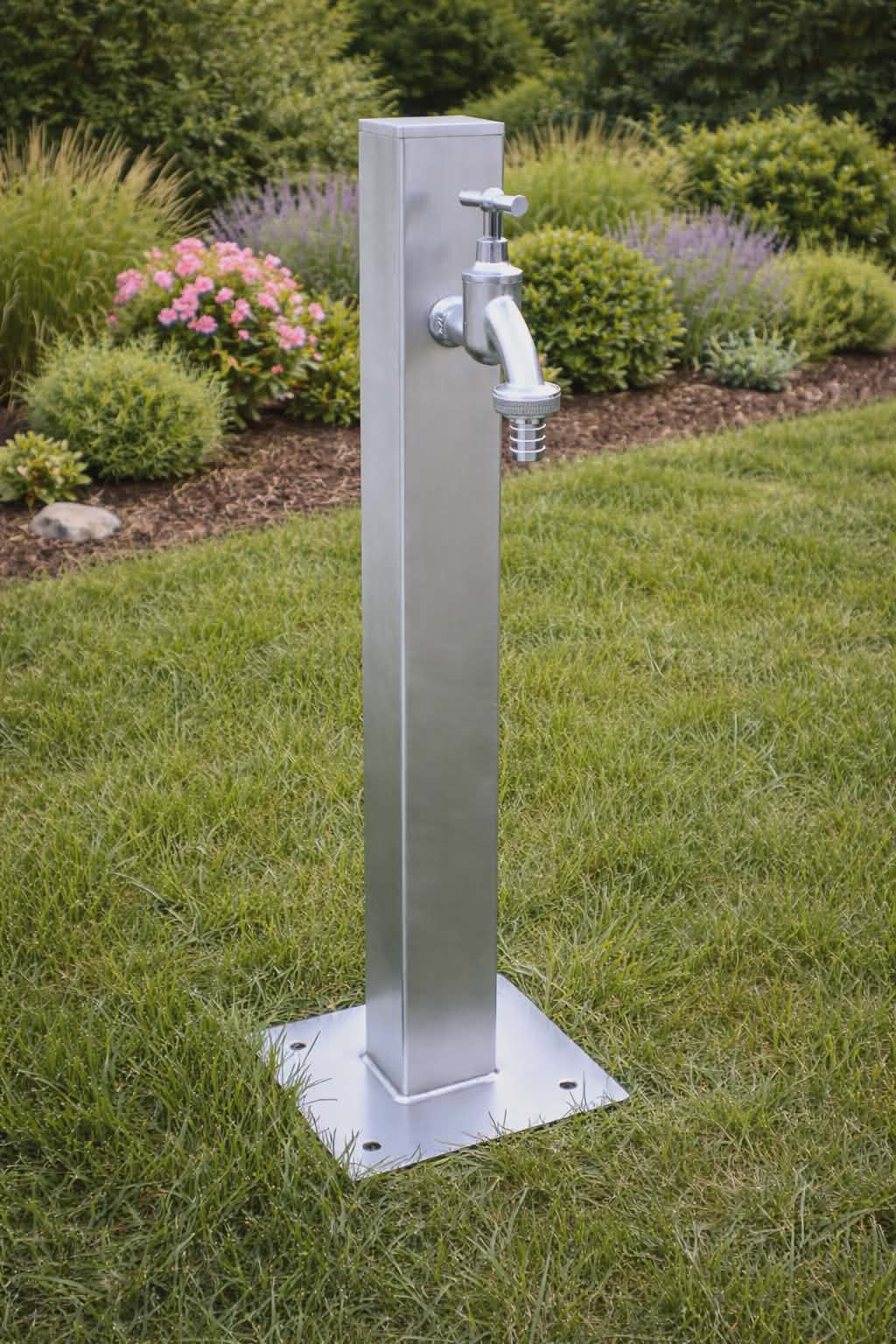 Voľne stojací stĺpik na vodu je vyrobený s kartáčovanej nerezovej ocele.
